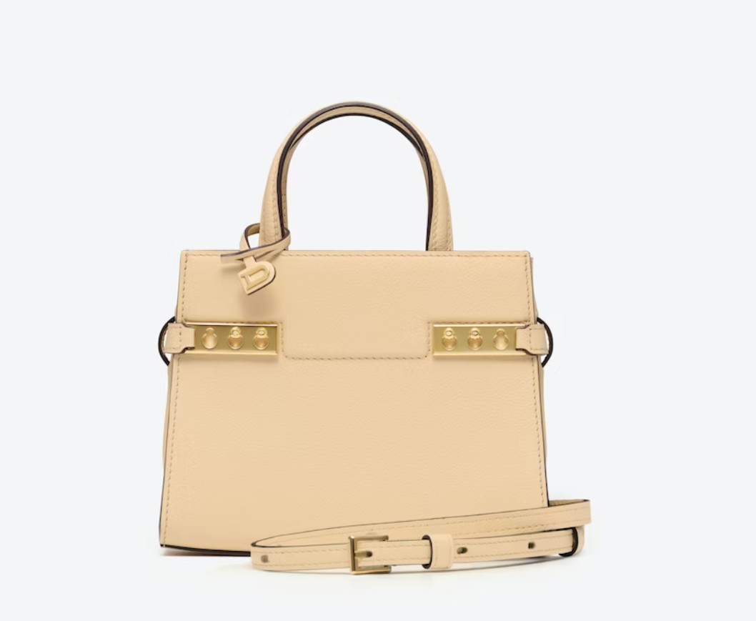 명품 브랜드 델보 여성 가방 베스트4 중 첫 번째는 Tempete Crush 핸드백입니다. 골드 메탈 장식으로 포인트를 둔 아담한 사이즈의 델보 백입니다. 6가지 다양한 컬러가 있고, 점핑 카프 가죽으로 우아하면서도 고급스러운 느낌을 줍니다. 핸드백으로 사용할 수 있을 뿐 아니라 탈부착 가능한 숄더 스트랩도 있어 편안하게 데일리 룩에 맬 수 있는 명품 가방을 찾으시는 여자분들께 추천드립니다.